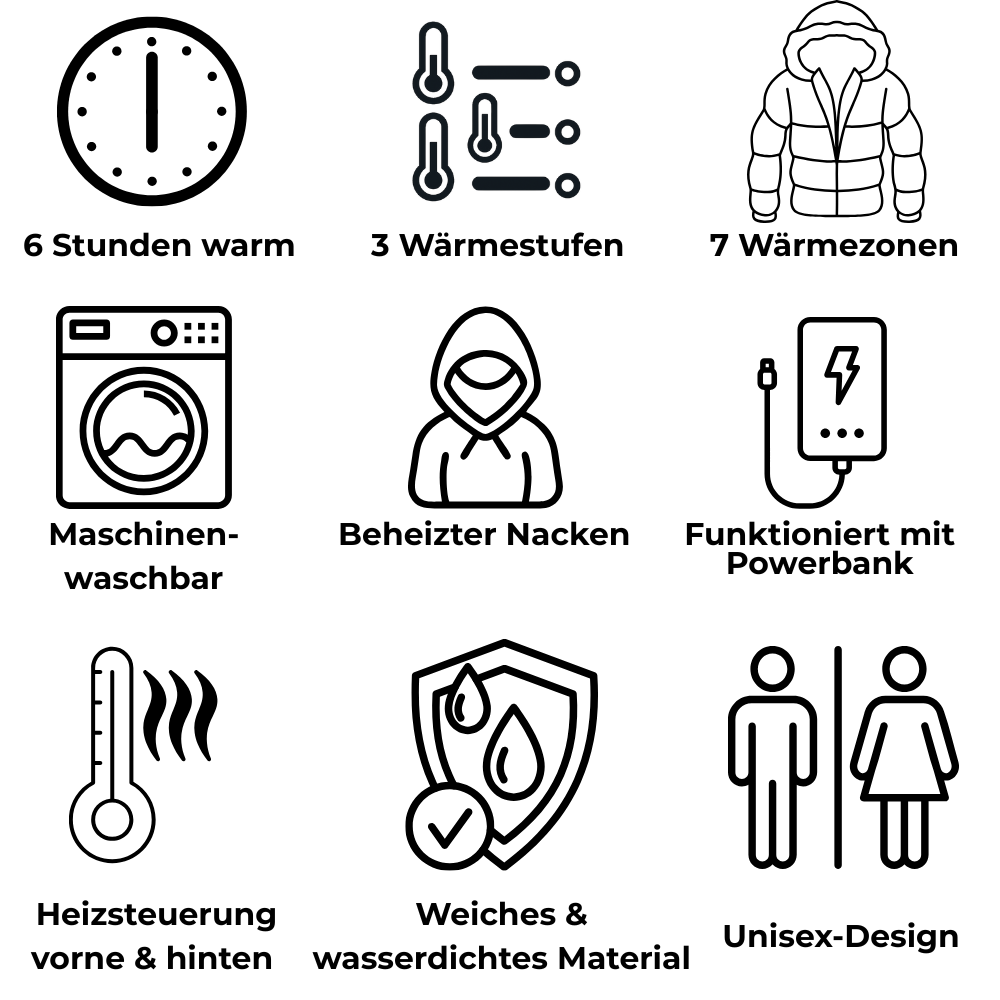 Erlebe unvergleichliche Wärme und Komfort mit der originalen beheizbaren Winter Jacke.
